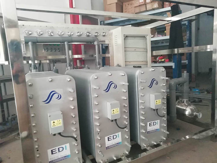 3、第三种采用反渗透作预处理再配上电去离子(EDI)装置,这是目前制取超纯水最经济,最环保的超纯水制备工艺,不需要用酸碱进行再生便可连续制取超纯水,对环境没什么破坏性。其缺点在于初投资相对以上两种方式过于昂贵。